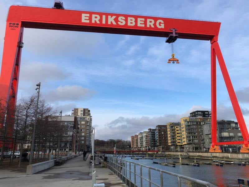 Det är fina bryggor att promenera på stora delar. Den stora Eriksbergskranen är ett maffigt landmärke som minner om varvstiden, det gör också en hel del av byggnaderna.